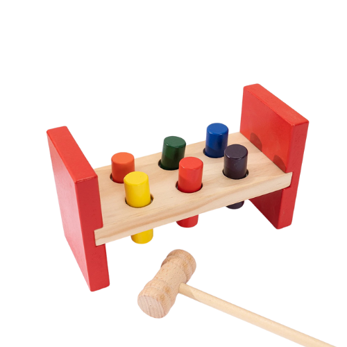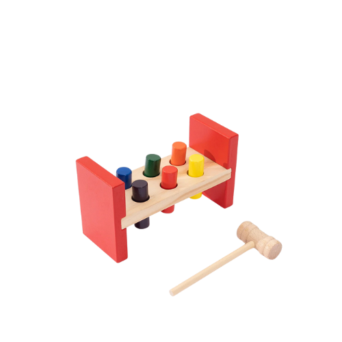 Le banc à marteler Montessori est un jeu éducatif en bois conçu pour développer la motricité fine, la coordination œil-main et la concentration des tout-petits.